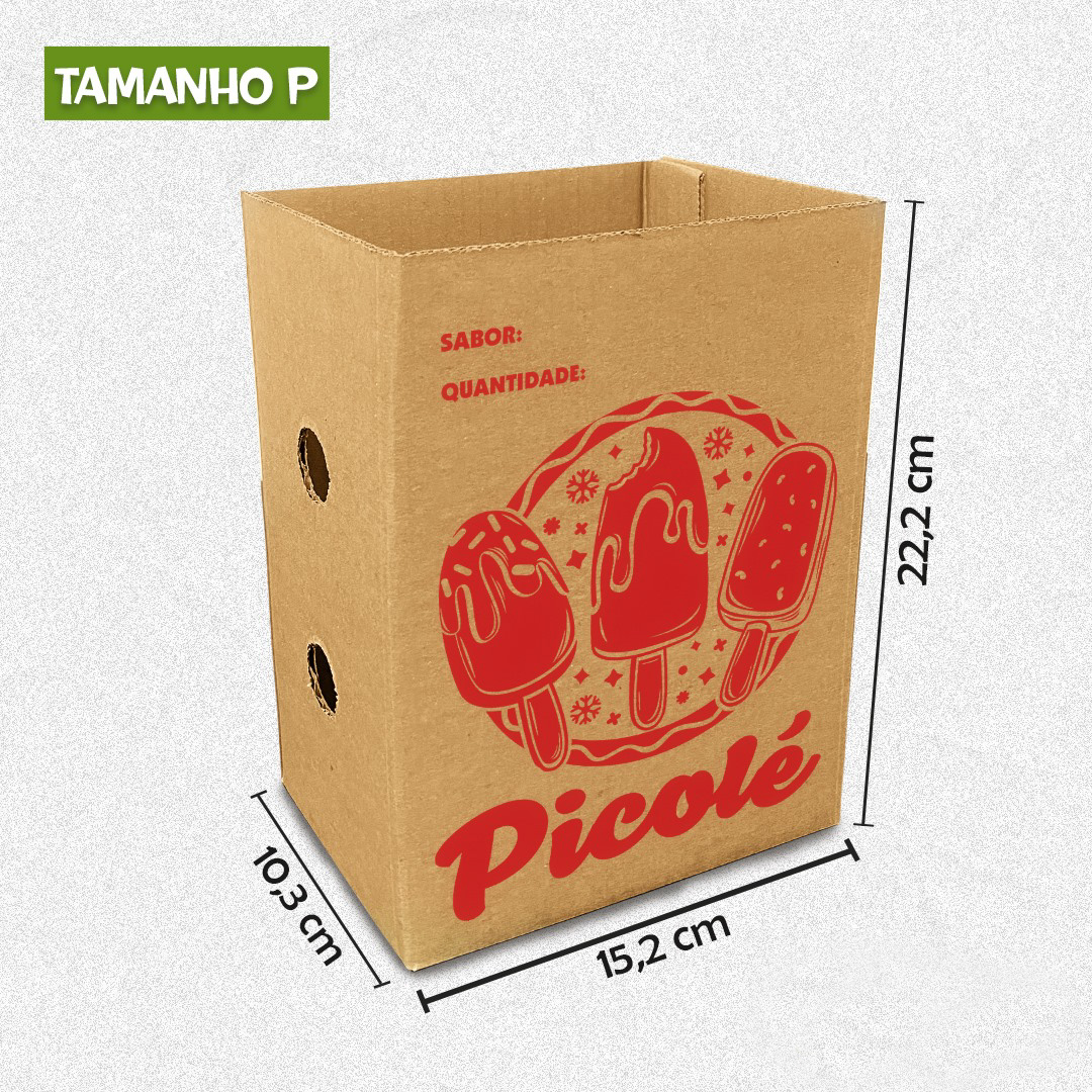 Caixas personalizadas projetadas especificamente para seus picolés. Oferecemos opções de tamanhos que incluem: